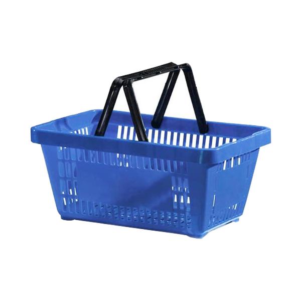 Cesta plástica de compras com alças S-600; Capacidade 13 Litros; Material polietileno de alta resistência, leve, fácil empilhamento e higienização; Permite gravação de nomes e logomarcas; Aplicação supermercados, armazéns, lojas de conveniência, pet shop, hortifrútis, drogarias e padarias; Cores vermelho, azul, amarelo e verde