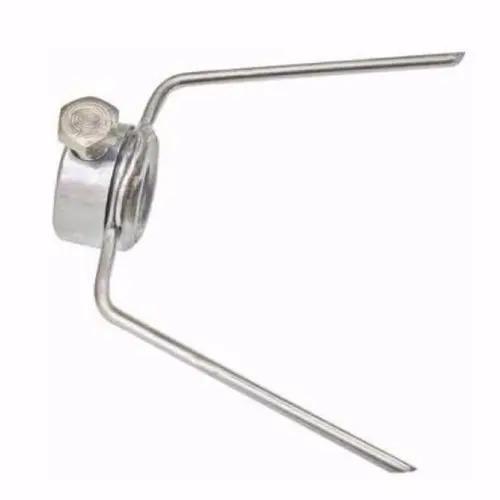 Garfo simples para máquinas de assar frangos; - Para ser usado nas extremidades do espeto, com os garfos duplos no meio ( vendidos separadamente), segurando os frangos; - Feito todo em alumínio, garfos com pontas para fincar no frango Tipo: Garfo de Frango Simples.