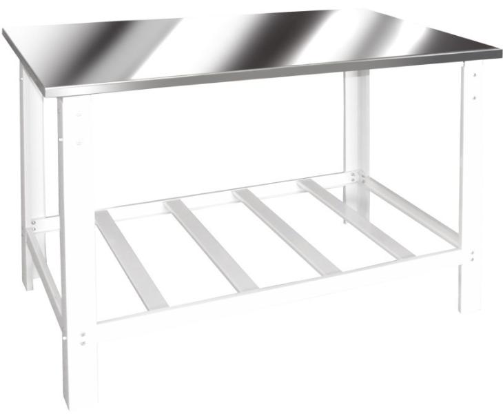 A Mesa de Serviço Cristal Aço conta com seu tampo em aço inox 430 de 1mm de espessura super reforçada, com os pés e grande inferior também em aço inox reforçados.